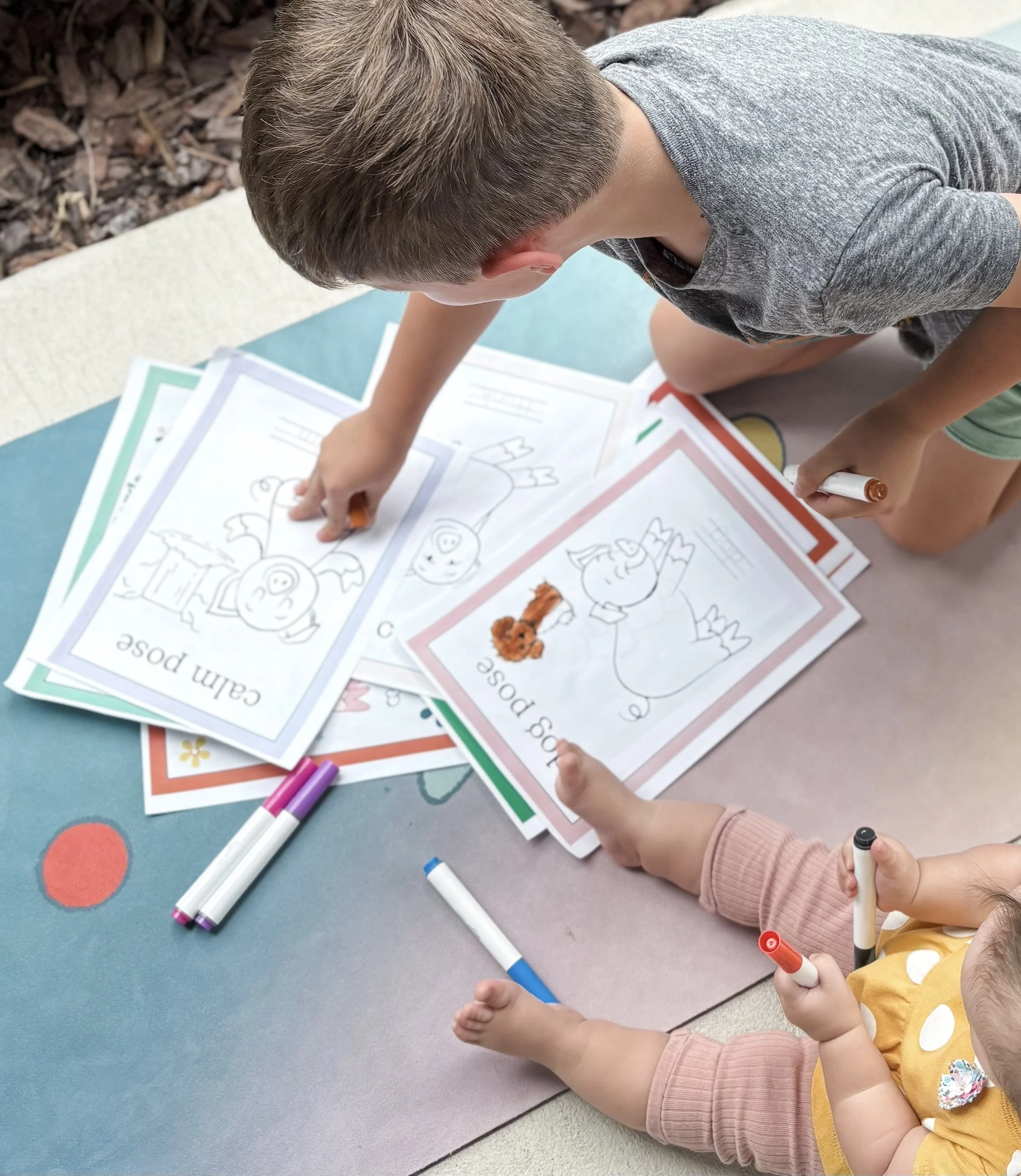 A digital Oinky Yoga Coloring Cards deck with Oinky demonstrating each silly and fun yoga pose for your kiddos to color and keep for their yoga practice! Your kiddo will have a blast coloring in all of the yoga cards and then practicing the Oinky yoga poses over and over again! Each card has a writing section for kiddos to practice their lowercase letters- Montessori style! This is a digital download- the PDF is available for download immediately after purchase, so that you can print them out from anywhere!